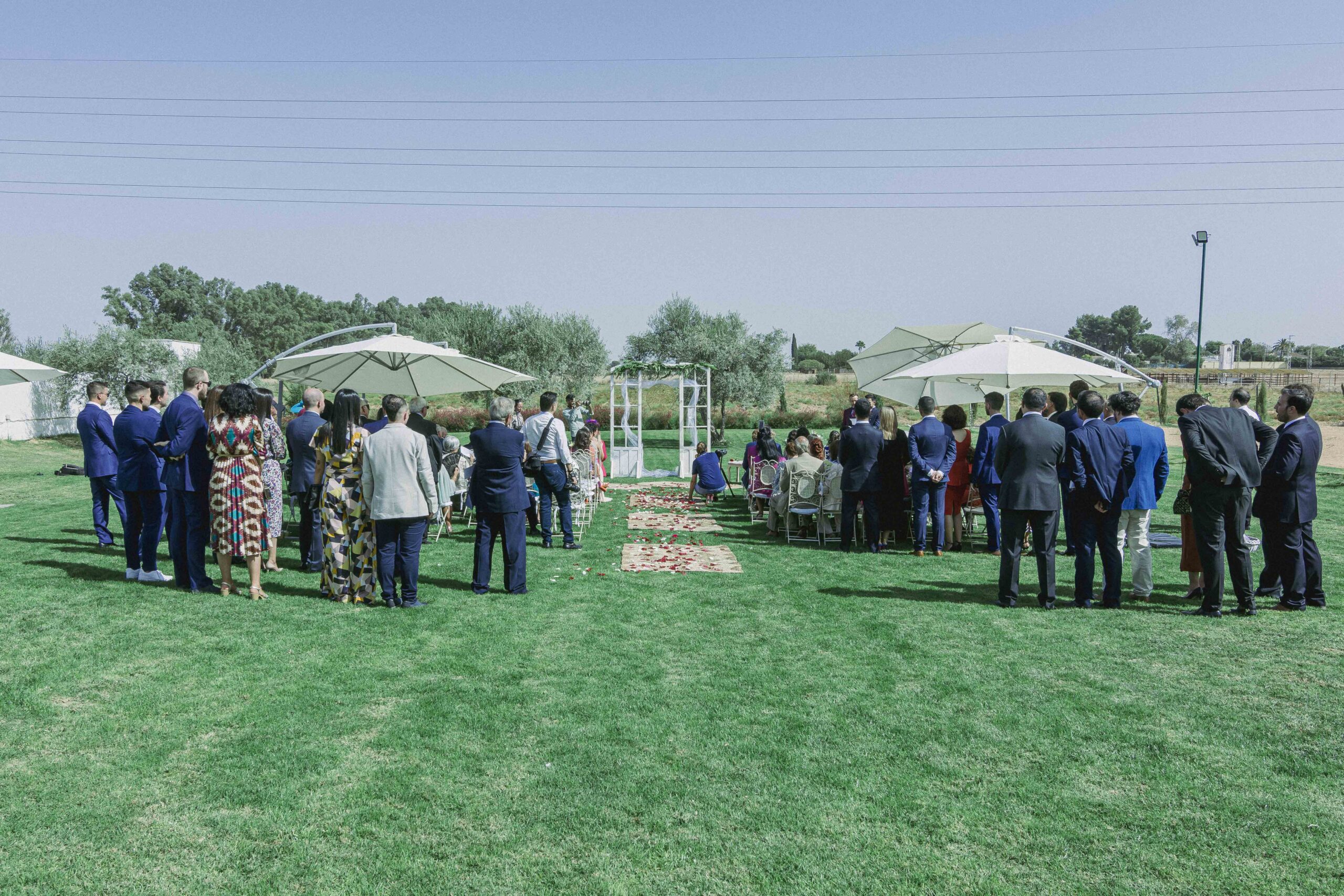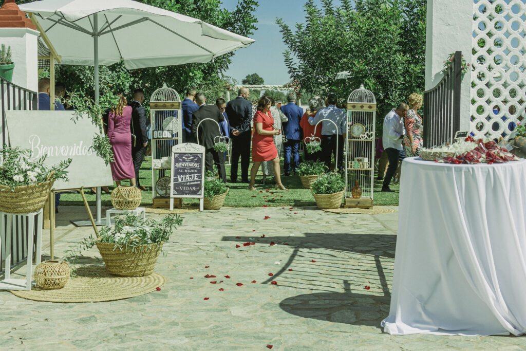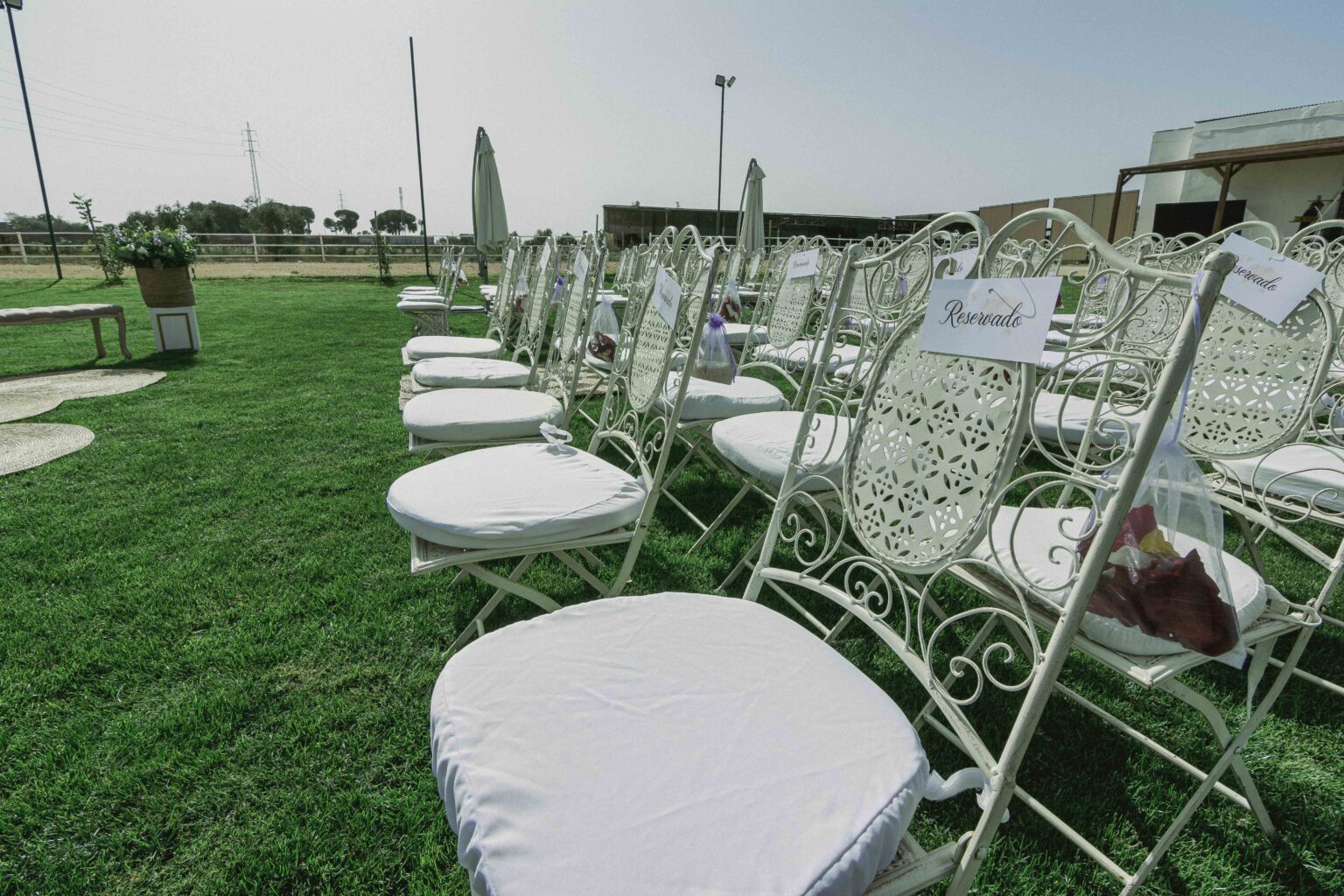 Zona de 1000m2 con el verde como protagonista y una bonita piscina de fondo que se configura como un enclave ideal para las celebraciones de ceremonias nupciales.